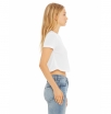 3.7 oz., 65% polyester, 35% viscose, 32 singles; Flowy fit; Side seamed; Tailored sleeve; Modest crop;