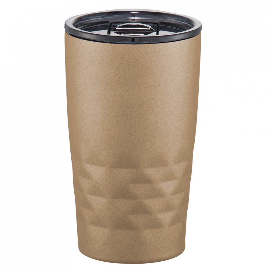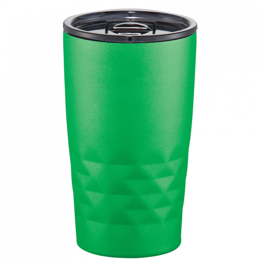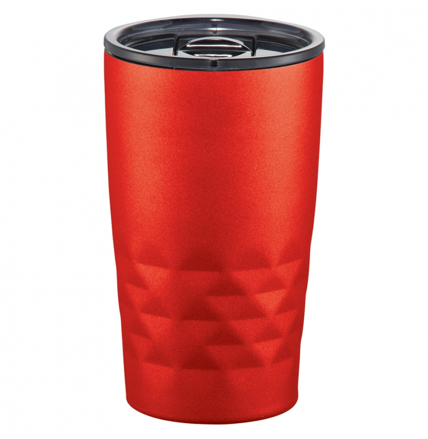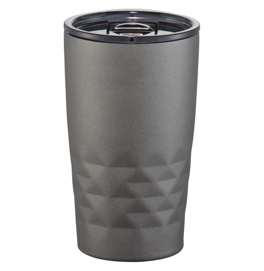 Part of our Bold Geometry trend collection this style is defined by angles that create a great tactile and visual experience. Double-wall vacuum construction with copper insulation. Keeps drinks hot for 8 hours and cold for 24 hours. The construction also prevents condensation on the outside of the tumbler. Compact design fits easily under most single cup or K-cup coffee makers as well as in all standard cup holders. Easy sipping, push-on lid with slide closure. Wide opening for comfortable filling and pouring. Leed’s Exclusive. 14oz.
