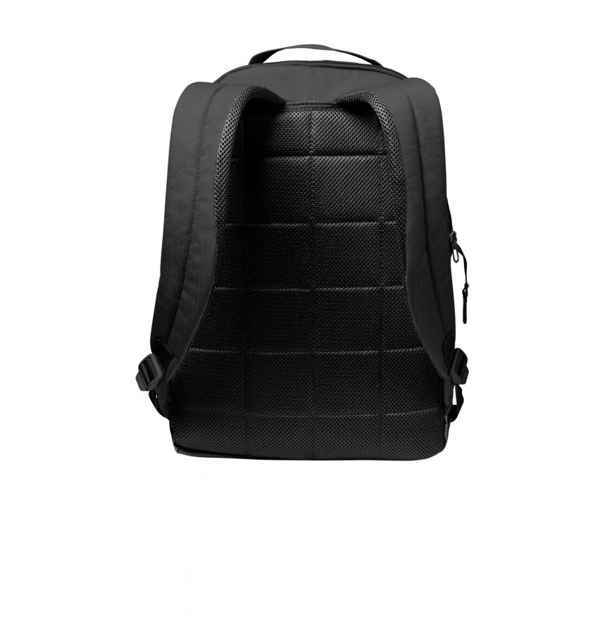 This versatile backpack is ideal for packing everything you need to get you through a busy training day or when you re away from your locker, gym or home. 100% recycled polyester dobby Back panel and shoulder straps are padded for comfortable carrying Multiple pockets provide organized small-item storage Zippered main compartment offers spacious and secure storage Plush-lined, zippered pocket for headphones or electronics Padded sleeve safely stores a laptop A water-resistant coating on bottom panel helps keep gear dry Contrast Swoosh design trademark Laptop sleeve fits most 15 laptops Dimensions: 18 h x 12 w x 7 d Approx. 1,465 cubic inches Note: Bags not intended for use by children 12 and under.