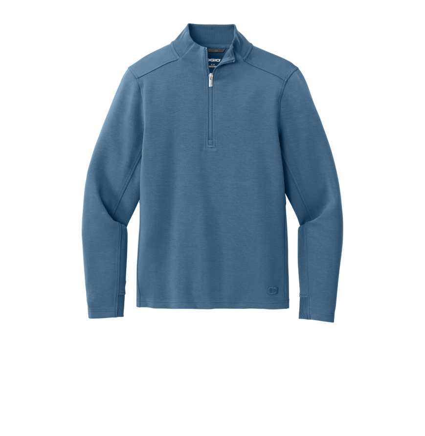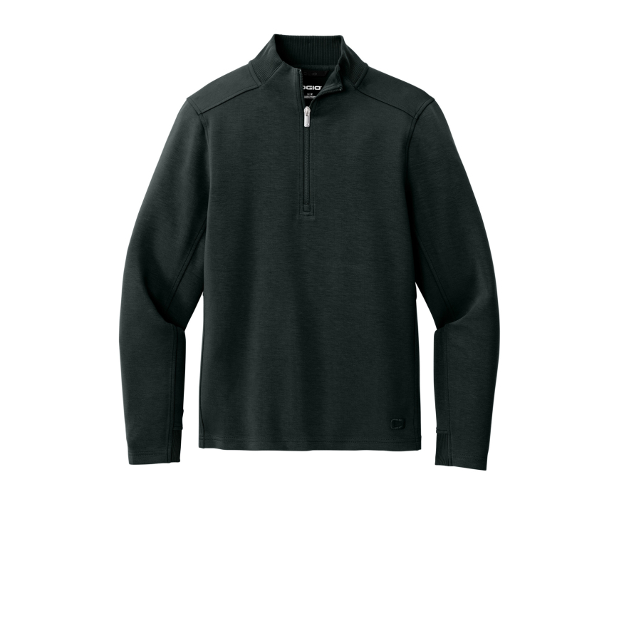 Perfectly polished, this elevated, sueded 1/4-zip performs with stretch and transcends the line between work and leisure. 9.1-ounce, 50/44/6 rayon/recycled polyester/spandex double knit fleece OGIO heat transfer label for tag-free comfort Neck taping Rib knit detail at collar and cuffs Embossed OGIO logo locker loop Forward shoulders Two-piece sleeves Curved style line at mid-back Embroidered O icon on left hem