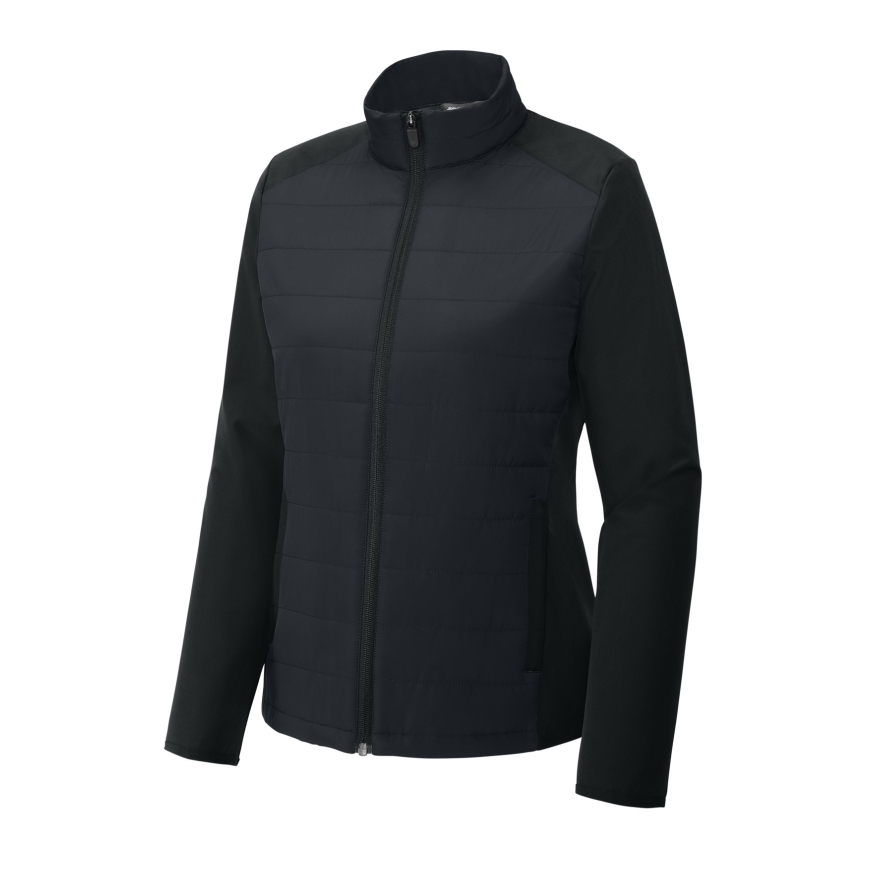 Constructed from two different fabrics, these performance jackets offer a teknical advantage that keeps you warm while allowing a full range of motion. 100% polyester baffles, 90/10 polyester/spandex double weave Durable water repellent (DWR) finish Woven locker loop label Dyed-to-match stretch binding at cuffs Zippered side pockets Adjustable drawcord hem Texturized zipper pull at front zipper